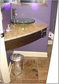 Cusom serpintine edge slate floor Custom curved front countertop and apron