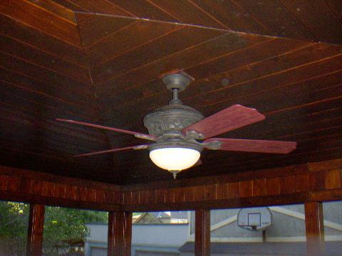 Cedar plank picture framed vaulted ceiling on screened in porch